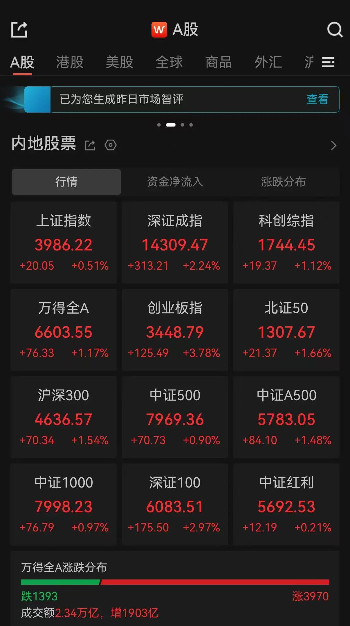 关键字: A股收评:近4000只个股飘红,三大指数集体收涨,沪指400